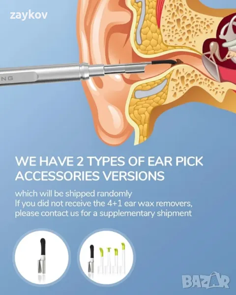 Видео с висока разделителна способност: Тази камера за почистване на уши може да заснема видео на живо и да прави снимки с резолюция 1280 x 720p. Радиаторите и контролът на температурата ще попречат на камерата на отоскопа да стане твърде гореща за допир.