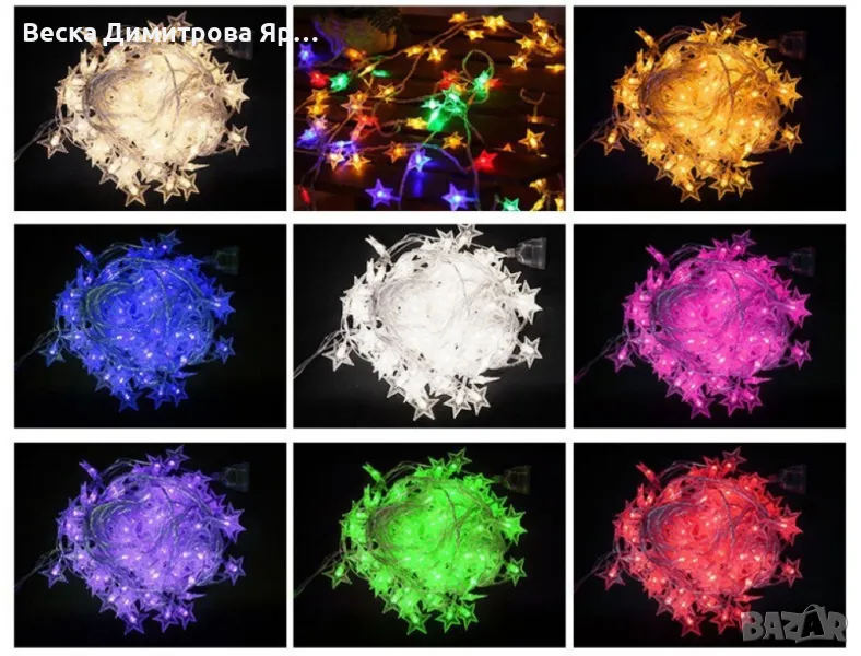 Многоцветни, дължина - 5м ,28бр. лампички. Всяка лампичка е оформена като малка звезда, което придава още по-голям блясък и вълшебство на вашето пространство. Светлините трансформират вашето място в магичен коледен кът, който всички ще обичат. Поръчайте ги сега и превърнете всяко място в магично и светещо Коледно чудо! ???