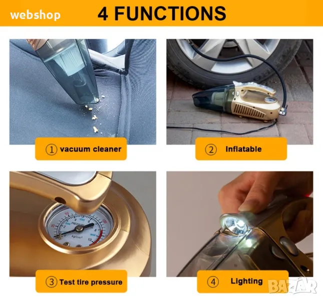 Супер мултифункционална 100W автомобилна прахосмукачка 4 в 1