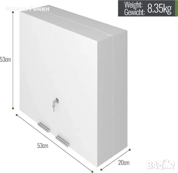 Шкаф за лекарства Jago® - с ключалка, монтиран на стена, двойна врата, 53 x 20 x 53 см, стомана, бял - 130.00лв.
