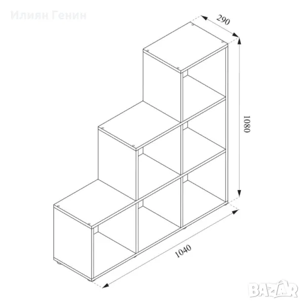 РАЗМЕРИ: Рафтът за преграда е с ширина 105 см, височина 107,5 см и дълбочина 29 см. Всички подробни размери са показани на снимките.