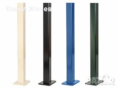 Ограден кол с размери 50 х 50 х 1500 мм. В основата с планка 120/120мм капачка и всичко нужно за монтаж (4 анкера и 3 скоби):