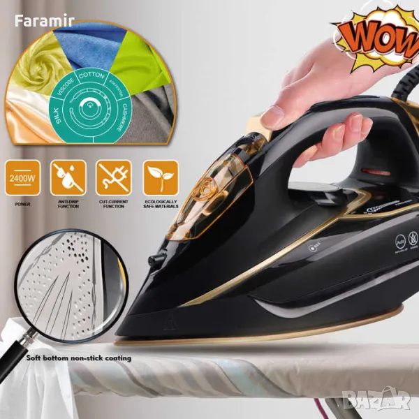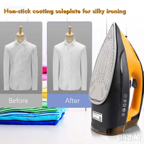 Система против капене: Системата против капене вероятно ще предотврати изтичането на вода и капенето по време на употреба, като гарантира, че изгладените тъкани остават чисти и без петна.