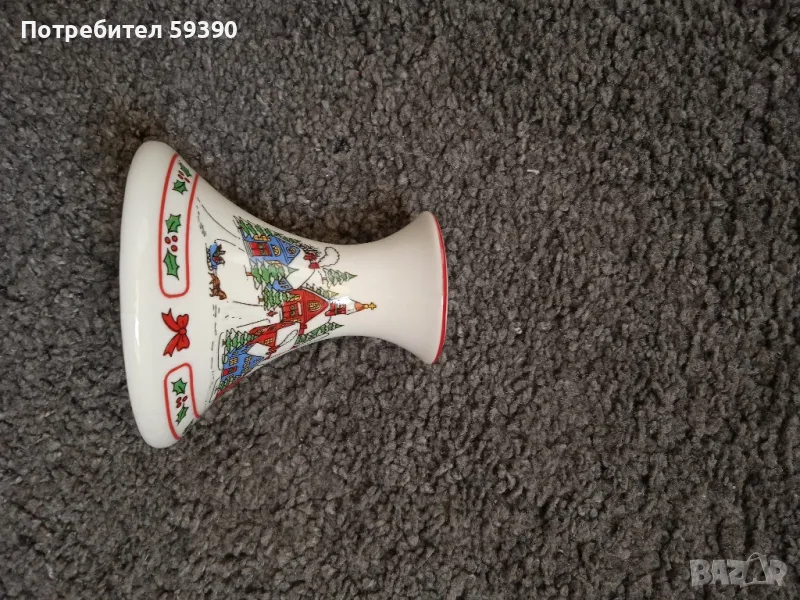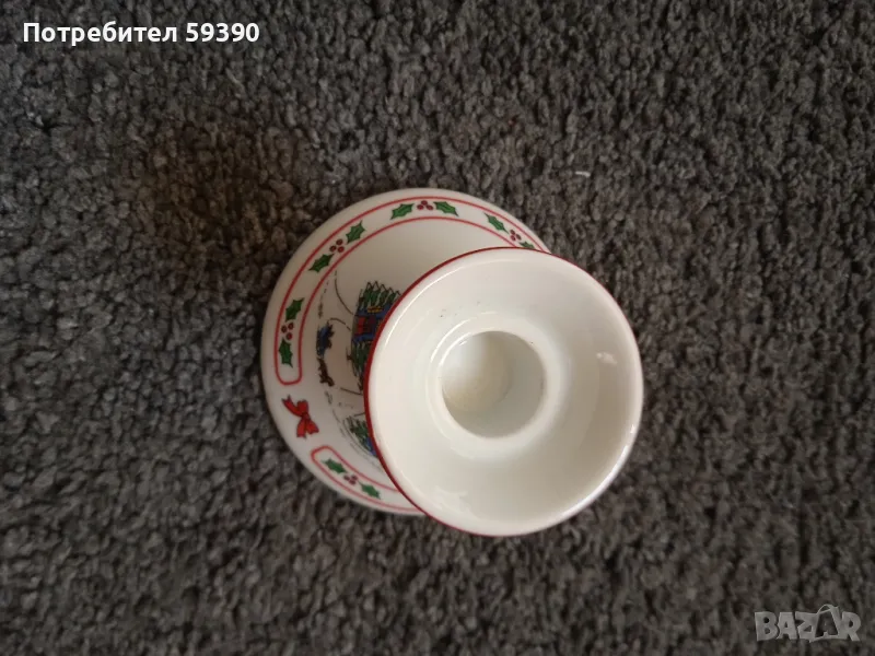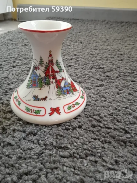 Красив коледен свещник от фин японски порцелан. Нов. Височина:10 см. Ширина в основата:9,5 см. Цена:30 лв. За София може на лично предаване. Ще публикувам и другаде.