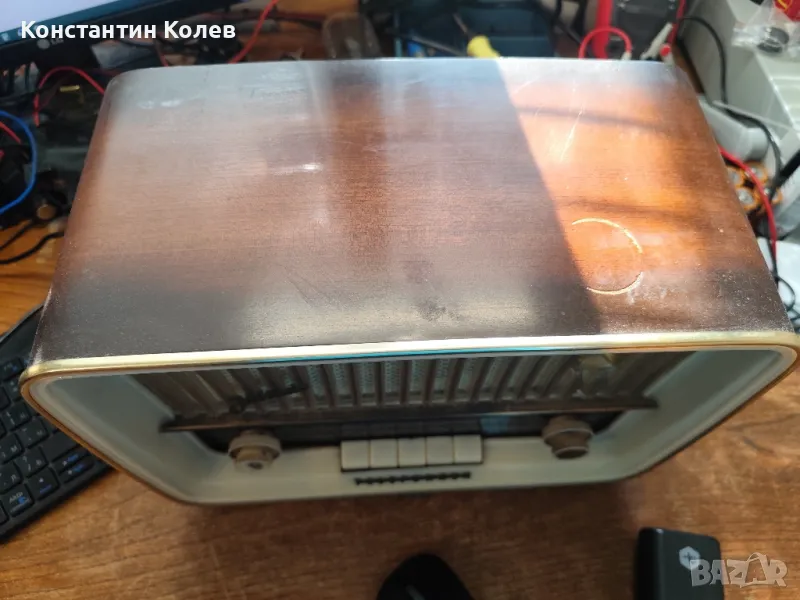 TELEFUNKEN Jubilate 1061. Радиото е оригинално от 1960г. с добавен FM модул за да хваща радио в днешни дни. Разполага с блутут и място за флаш памет. Контролира се само с дистанционно. Разполага с удобно захранване през USB. Оригиналното лампово стъпало е изключено. Между другото работеше, но почна да пуши от трансформатора и го изключих. Всичко си му е налично вътре. Чудесно радио за декорация и приятна музика с приятели.
