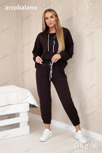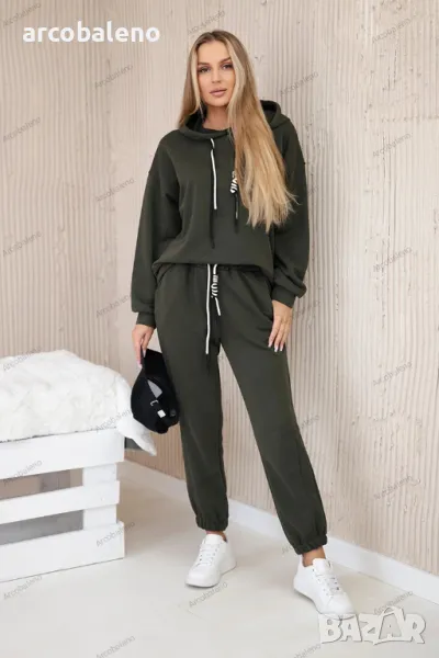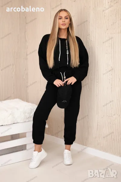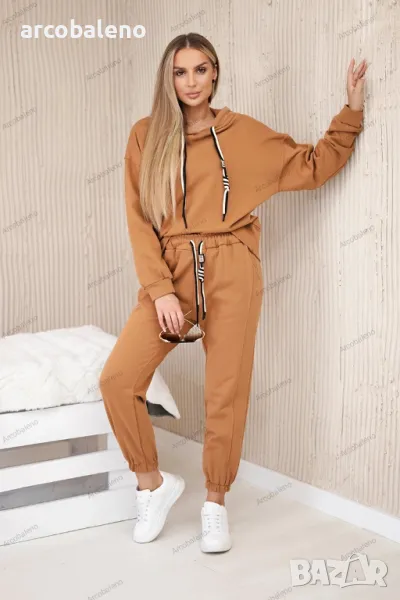 Дамски памучен комплект от две части суичър + панталон, 7цвята