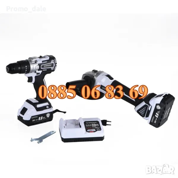 Комплект от акумулаторен ъглошлайф и винтоверт 36V 8Ah StahlMayer Pro