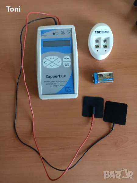 - ZapperLux е безопасен, защото работи с акумулаторна батерия от 9V. Той е окомплектован с две батерии и зарядно устройство, а това гарантира провеждането на хиляди процедури.