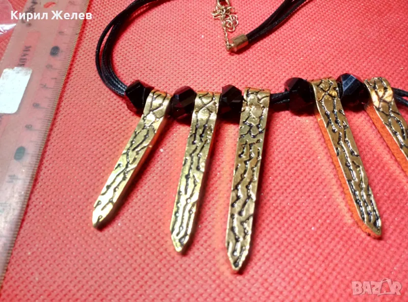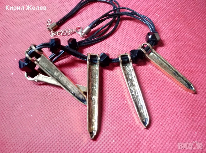 ШАРМАНТНА ПОЗЛАТЕНА РЕТРО АРТ СТИЛ ОГЪРЛИЦА КОЛИЕ 47273