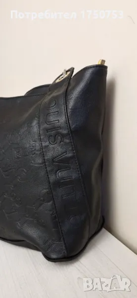 Дамска черна , кожена чанта Louis Viton. Много добре запазена. Здрава подплата и ципове. Кожа без ожулвания. Размери: височина 29 см; ширина 47 см.