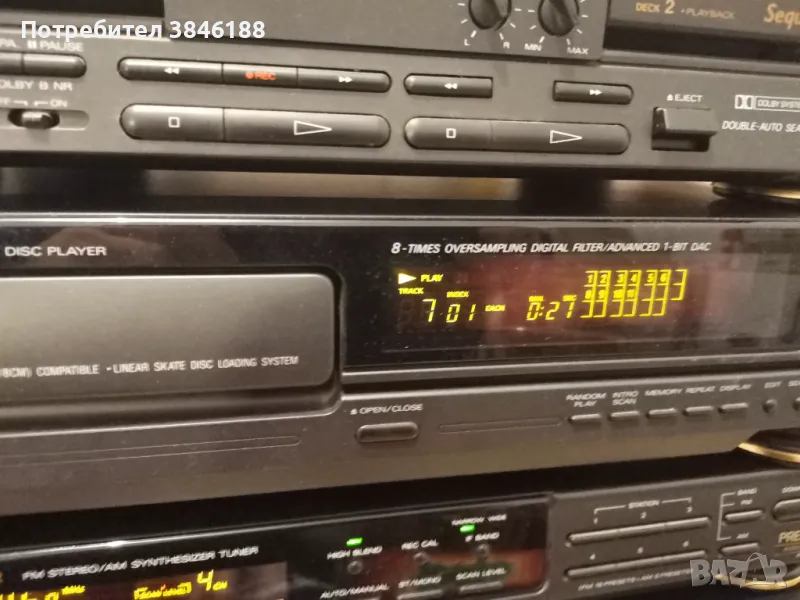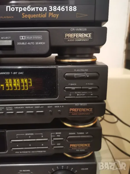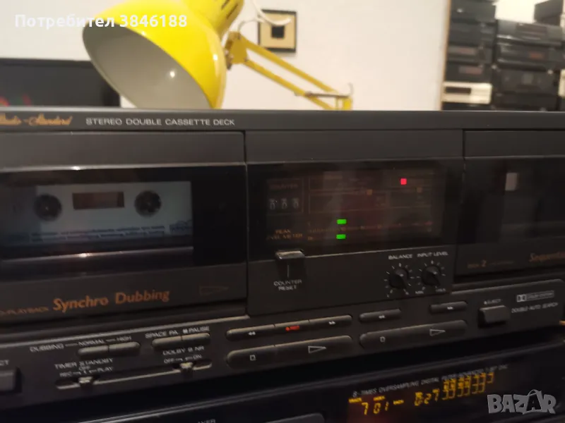 Всички елементи на системата работят.Касетният дек е за профилактика и нови ремъци-и двете страни ,,влачат"лентата.