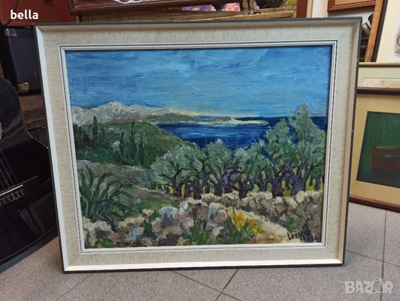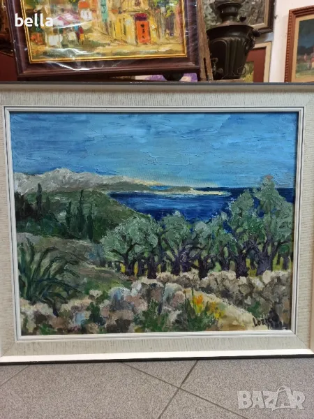 Голяма авторска картина -Пейзаж-масло върху фазер рамкирана и подписана 1969 год. → Обява 47316322