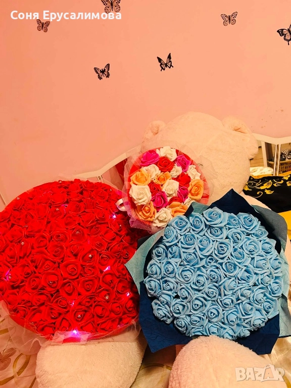 Букетите могат да се изработят в избран цвят и модел от клиента.Цени започващи от 25лв за повече информация на лично