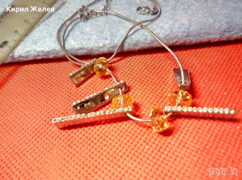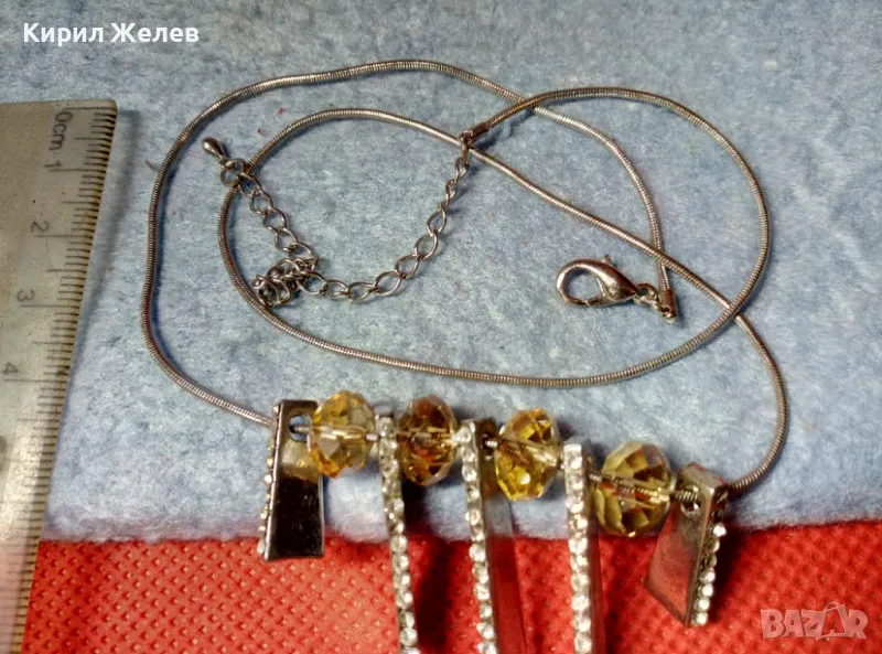 СТИЛНО ПОСРЕБРЕНО АРТ КОЛИЕ ОГЪРЛИЦА с ФАСЕТИРАНИ КРИСТАЛИ 18136