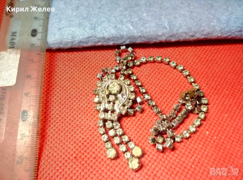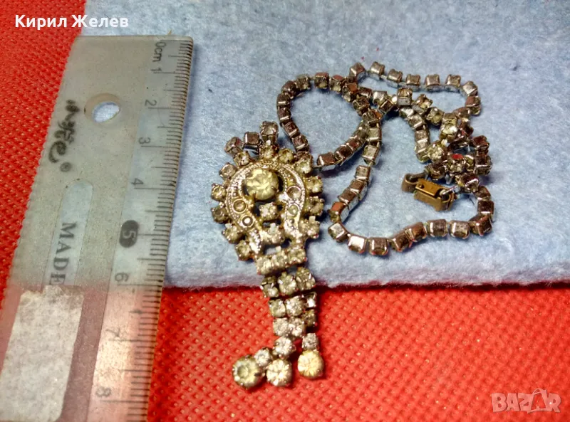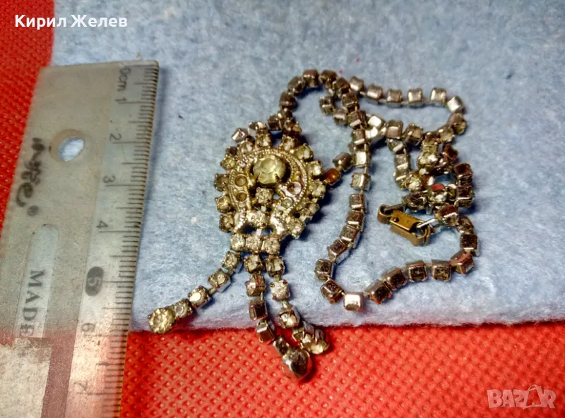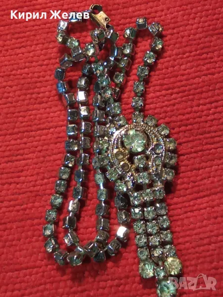 ПОСРЕБРЕНА РЕТРО МЕДНА ОГЪРЛИЦА с ФАСЕТИРАНИ ИСКРЯЩИ БОХЕМСКИ КРИСТАЛИ 47450