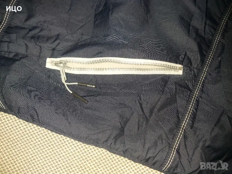 Ветроустойчива обработка, която прави тъканта устойчива на вода и въздух обработка, която прави тази тъкан както водоустойчива, така и устойчива на вятъра. Със два предни джоба с цип и един вътрешен. Прибираща се качулка. Дължина 78см широчина на подмишниците 60см. Размер М. Цена 70лв.