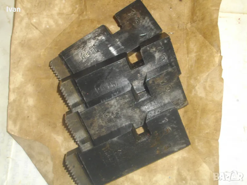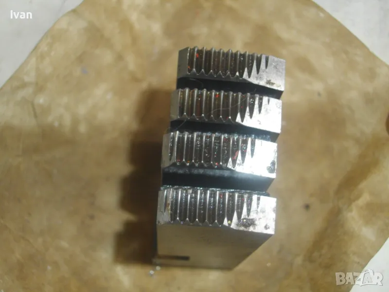 ОПИСАНИЕ на резбонарезни ножове за водопроводна плашка винтонарезка винторез за направа на реезби на тръби. За полската марка PROKOM. Ножове размер 1 " цол - 1 1/4 " цол - 4 бр. почти нови, отлично състояние, без никакво нараняване по зъбите. Ножове размер 1/4 " цол - 3/4 цол - 4 бр. отлични, без никакви наранявания по зъбите, като нови или съвсем нови неизползвани и неупотребявани. Разполагам и с ножове за марката голям размер до 2 цола / 1 1/2 цол - 2 цола/.