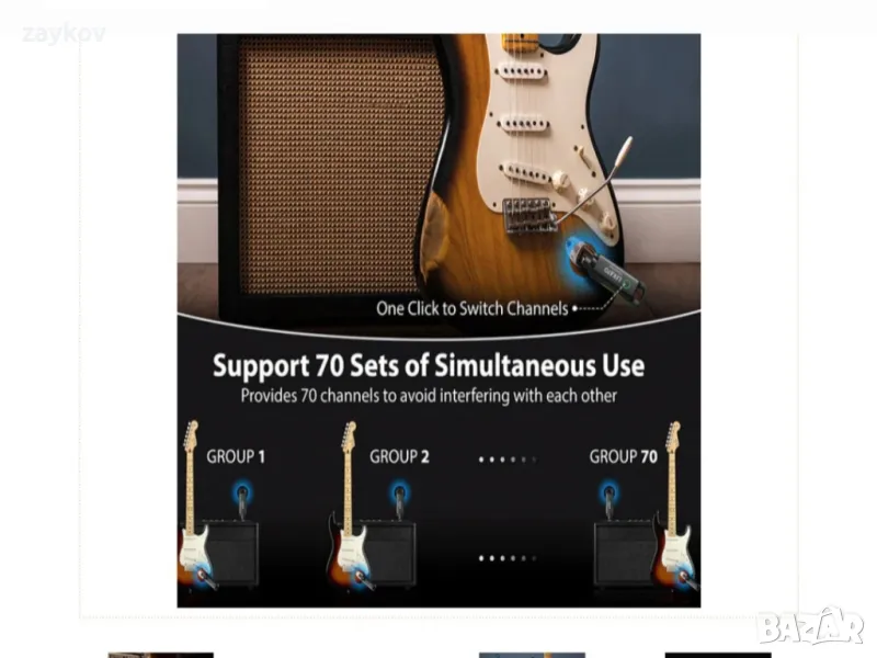 LEKATO безжична китарна система с актуализирани 70 канала, може да поддържа до 70 комплекта музикални инструменти, работещи едновременно (всеки инструмент се свързва към съответния високоговорител)