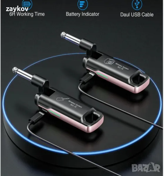Безжичният китарен предавател и приемник са с вградена акумулаторна литиева батерия, работното време е над 4,5 часа (при обстоятелства) след пълно зареждане.