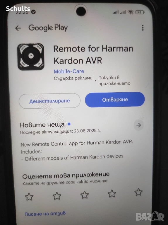 Harman Kardon AVR 21. Оригинална елемента база. Много стабилна конструкция с масивни радиатори. Захранване 500 вата. Идеално представяне в стерео режим. Изходи от предусилвателя и крайното стъпало. Може да се ползува и като предусилвател. Тунера избира станциите само ръчно. Дистанционно се командва от смартфон с Harman Kardon AVR APP. Инфо по телефона. Съобщения не чета. Частна продажба без гаранция и обратно изкупуване.