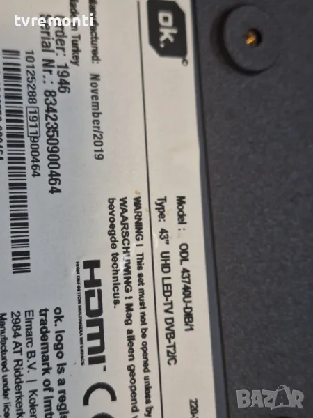 Платка SSB 17MB130S for 43inc DISPLAY VES430QNDA-2D-N41 for ODL 43740U-DIB борда е гарантирано работещ Демонтиран от телевизор ODL модел 43740U-DIB със счупен дисплей VES430QNDA-2D-N41 тествана от нашия техник Ремонт на всички марки съвременни телевизори