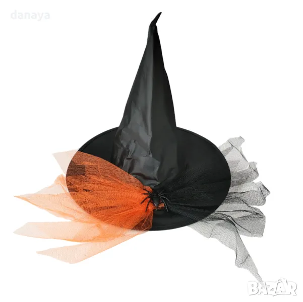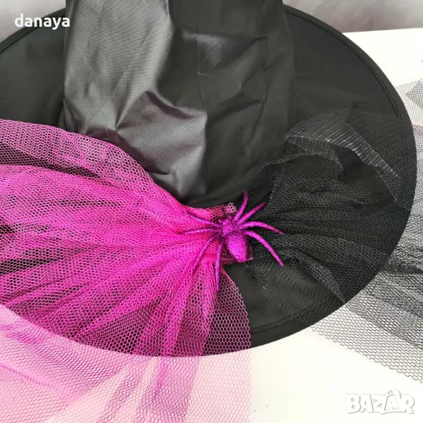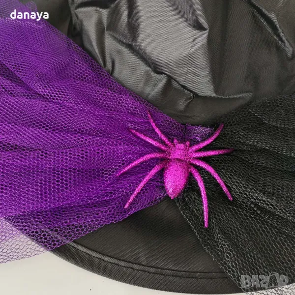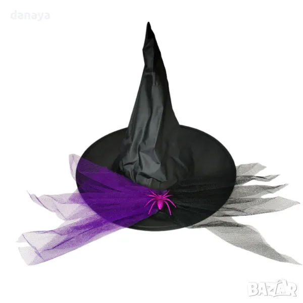 Тази впечатляваща вещерска шапка ще добави магическа нотка към всеки празник или костюмен бал! Шапката е в елегантен черен цвят, украсена с голям декоративен паяк и ефектна цветна дантела, които придават мистериозен и фантастичен вид. Изработена е с високо качество и внимание към детайла, което я прави идеална за тематични партита, Хелоуин или театрални постановки.