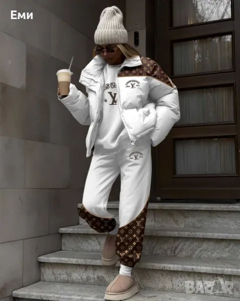 Дамски спортен екип от три части Louis Vuitton Екипа е долнище, горнище и яке.