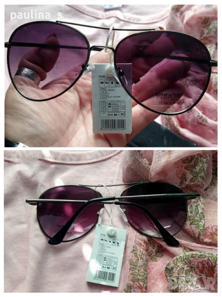 4️⃣. Колаж / "Vision". Цената е крайна 29,99лв. Очилата са на "Vision", cat3, polarized, Авиаторски модел с механизъм на рамките / Милано груп - Италия. Обща ширина 13,5см, рамки 14см.