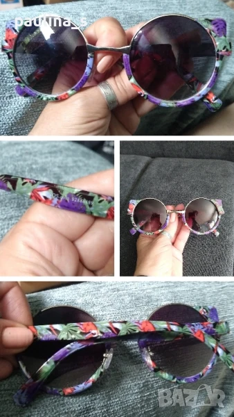 2️⃣. Колаж - "Asos". Цената е крайна 44,99лв. Изумителни маркови слънчеви очила с цветни рамки, уникален модел и аутлук, защитна категория 4 със затъмнение. Очилата не са носени нито веднъж, купени са в Цюрих, широки са ми и ги продавам на символична цена, не са масовка, на живо са изключително атрактивни, с реални снимки! 13,5см / 14,5см дръжки.