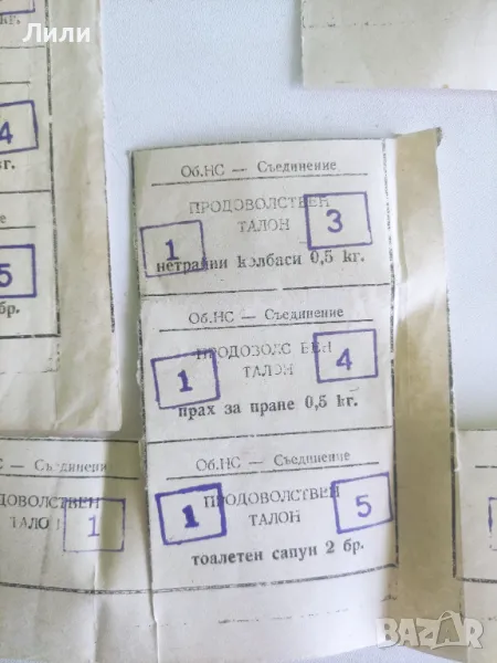 Продоволствени талони от социализма. Ретро ваучери за храна. Спомен от Социализма талони за сапун, колбаси, перилни препарати. Цена за брой 5 лева.