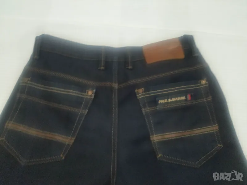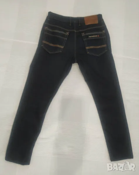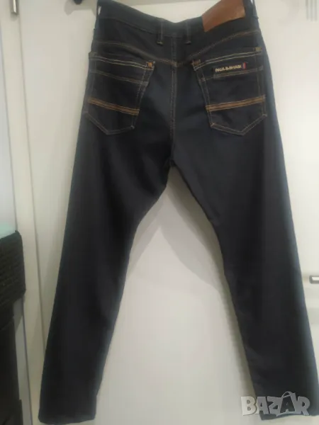 Оригинални мъжки дънки Paul Shark, всички кабзи и копчета са с означения на марката. Посочено състояние НОВО, защото са слагани два пъти за кратко и прибрани, не влизат в употреба от много време. Видно е от шевове и подгъви, че няма износване/протриване. Материя 98% памук, 2 % еластанан, имат известна еластичност. Размер 32/30, подходящи за ръст до 170см.., крачолите са коригирани.Цвят - много тъмно синьо, почти черно, средна плътност. Елегантна дреха. Мерки: талия-42см., дълбочина отпред-24, ханш-53, външна дължина на крачол-98, ширина на крачол при чатала-29, отвор на крачола-15.5см..