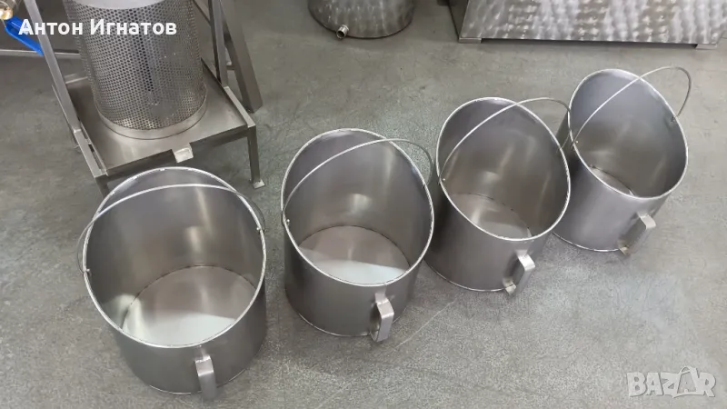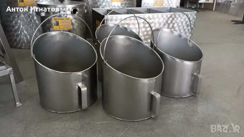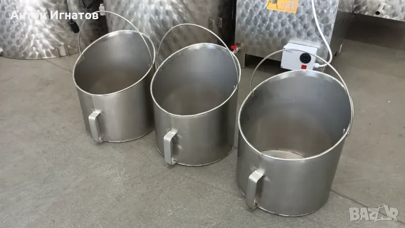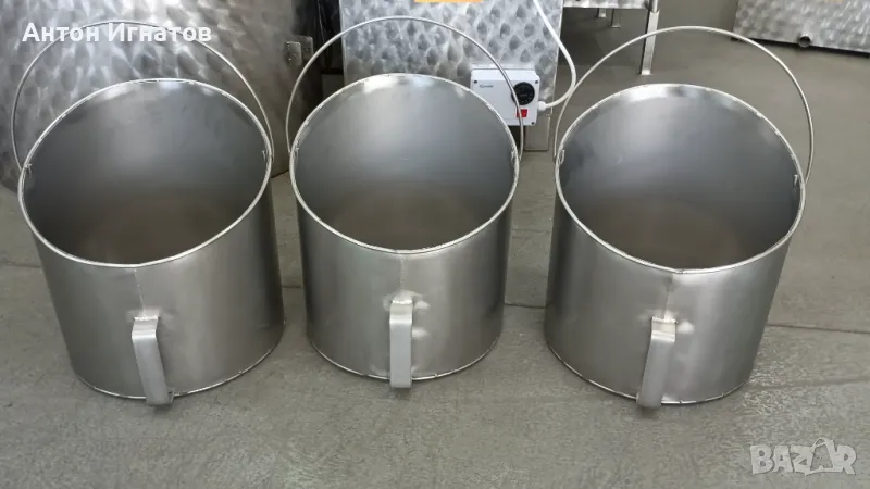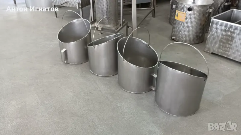 Ведро за овче мляко. Ведро за доене на овце. 15 л. Неръждаема стомана с дебелина 1.25 мм. Производство на всякакви съдове за съхранение на течни хранителни продукти като мляко, мед, вино, зехтин и др.
