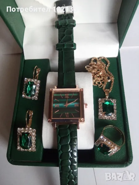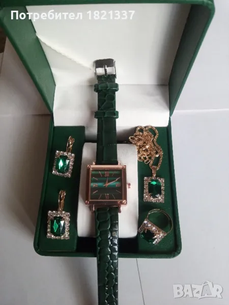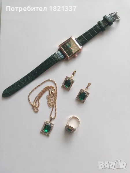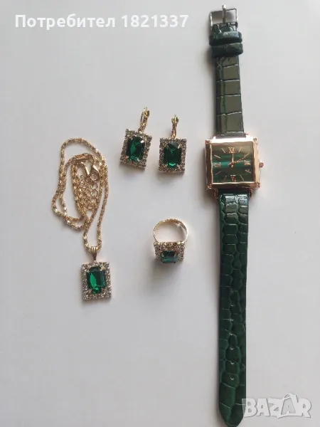 Дамски комплект - часовник, колие, обици и пръстен.