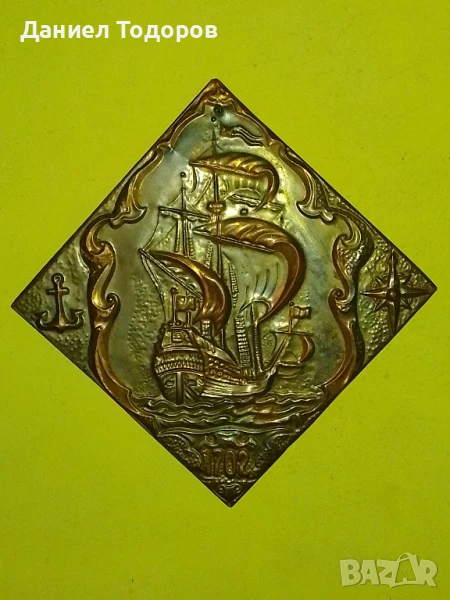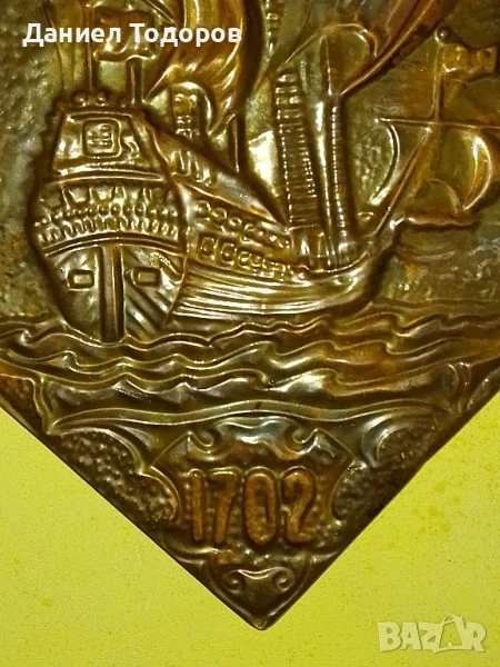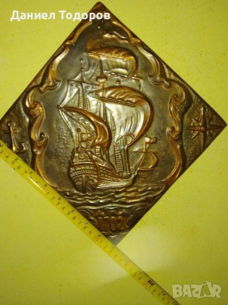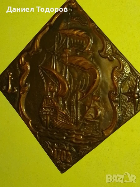 Стара Руска Медна Декоративна Картина , Медно Пано-Кораб 1702г.