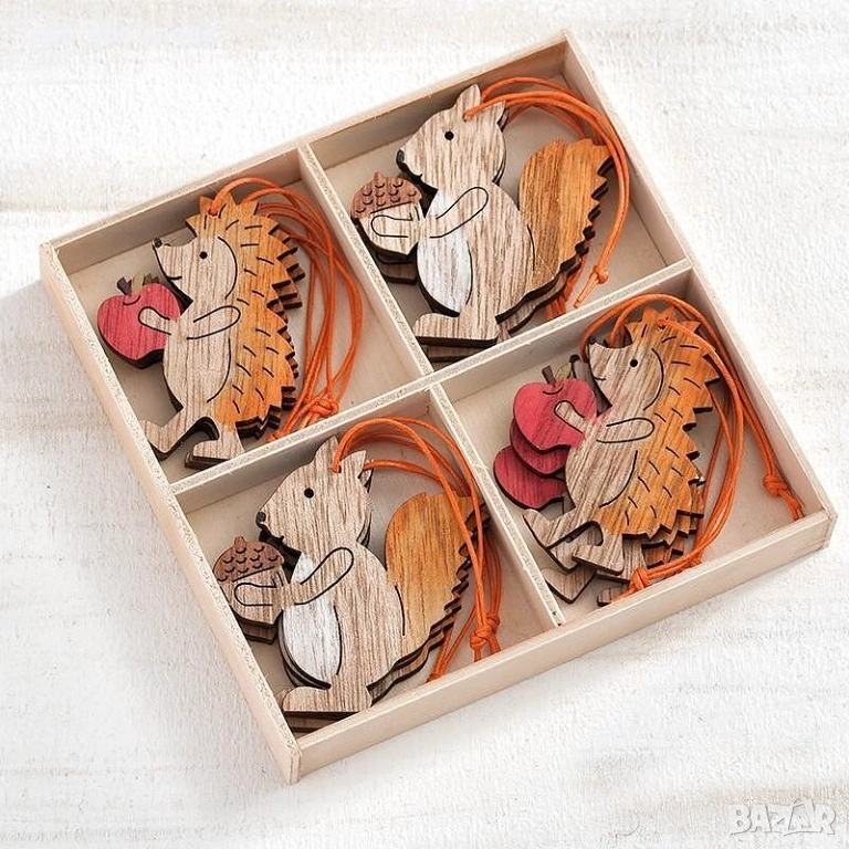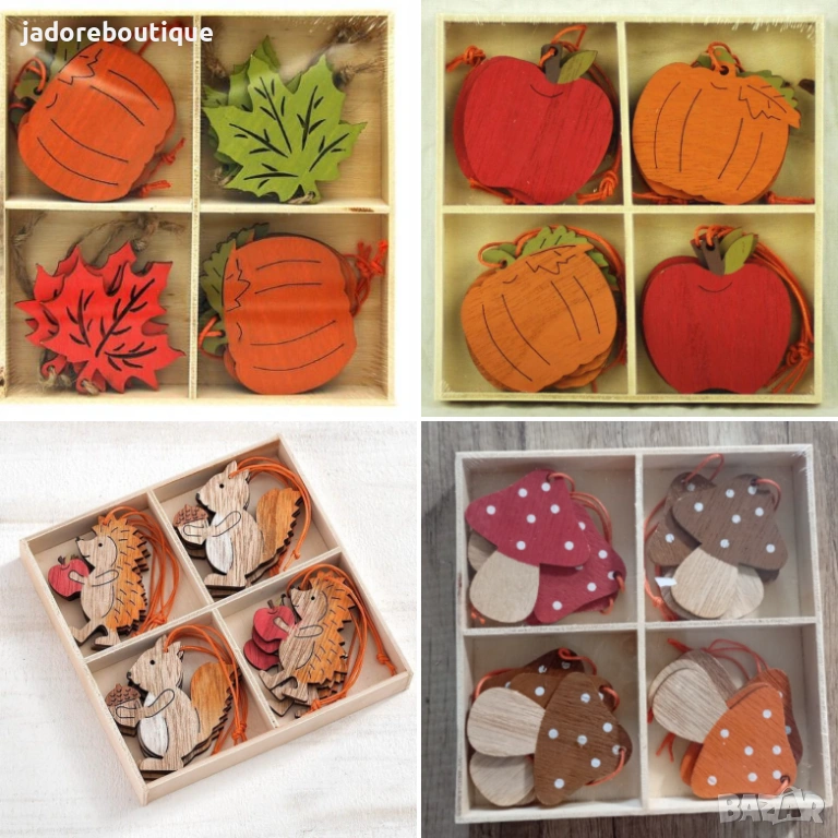12 бр Дървени елементи за декорация Тикви/ ябълки/ таралежи/ гъби/ катерички → Обява 47326764