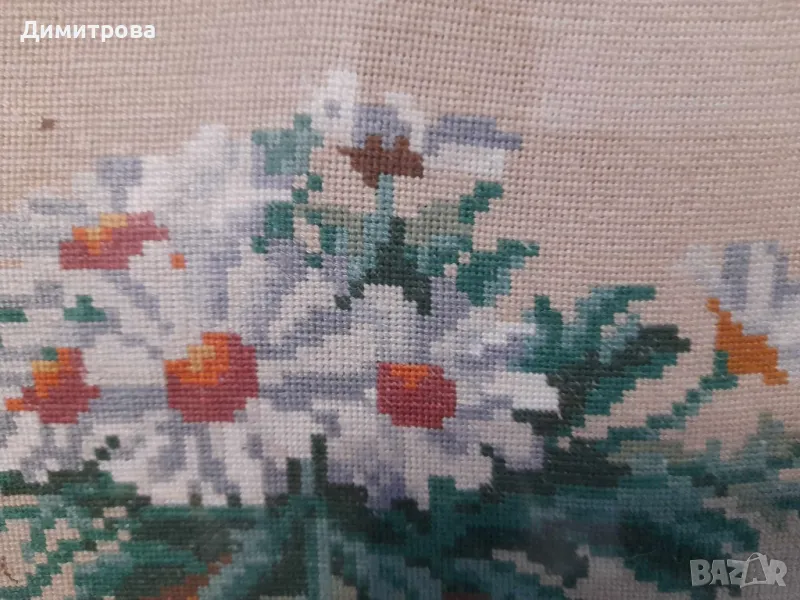 Ръчно ушит гоблен с дървена рамка и стъкло Маргарити, снимка 1 - Гоблени - 47327227 Ръчно ушит гоблен с дървена рамка и стъкло Маргарити, снимка 2 - Гоблени - 47327227 Ръчно ушит гоблен с дървена рамка и стъкло Маргарити, снимка 3 - Гоблени - 47327227 1/3