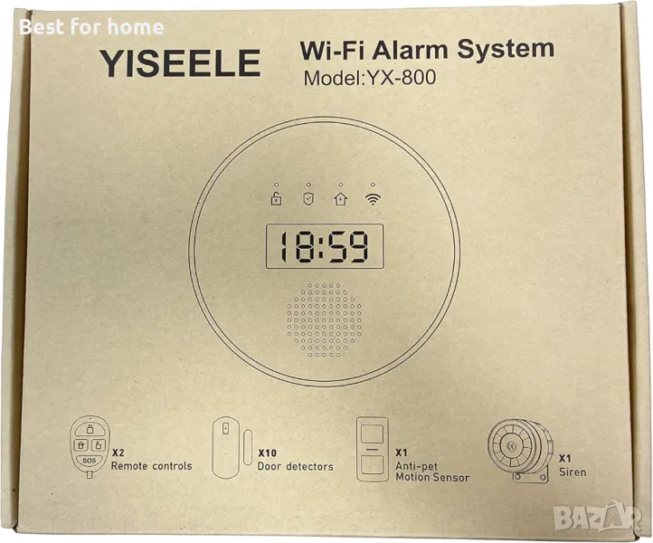 Алармена система YISEELE - Комплектът включва алармена базова станция, 10 контактни сензора за прозорци/врати, 1 детектор за движение на животни за коридори/стаи и 2 дистанционни управления със сирена (120DB)