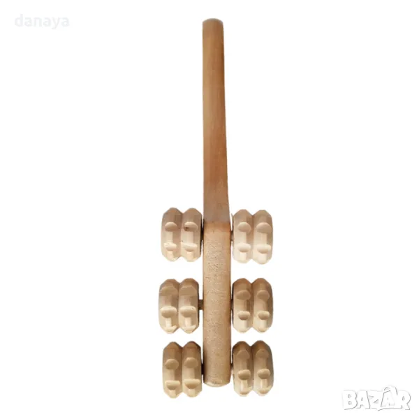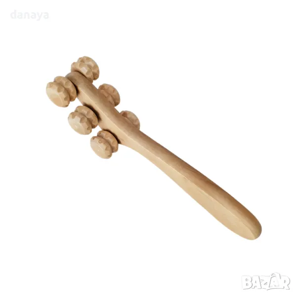 Дървен ролков масажор за бедра, ръце и гръб с 6 колела и удобна дръжка.