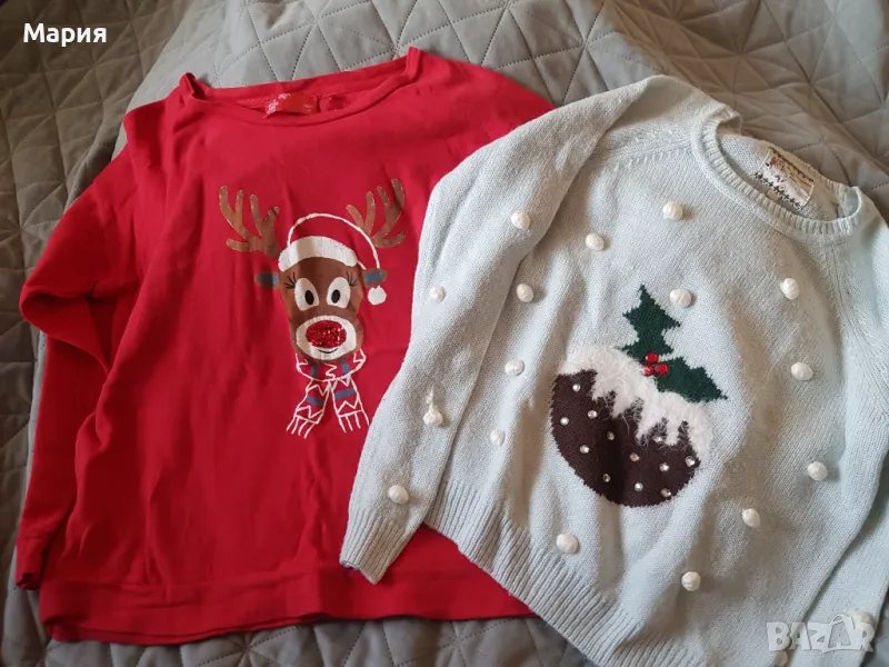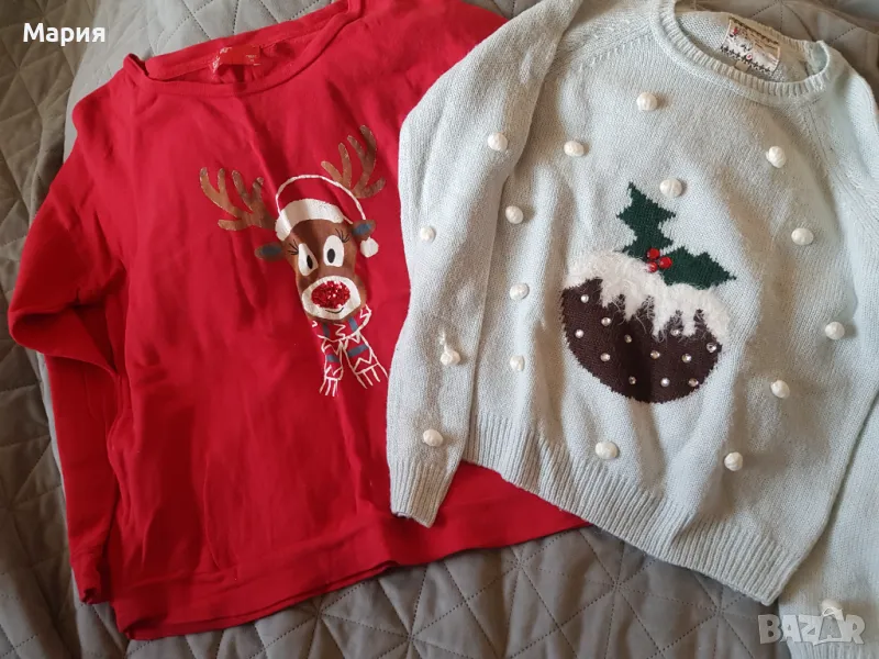 Два коледни пуловера, донесени от Англия. Червения е на Next, размер 40. Другия е размер 36. Цена за брой 18 лв. При покупка на двата отстъпка от цената.