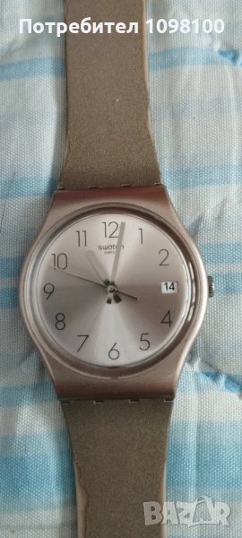 Дамски часовник Swatch, модел GP403 от розово злато, закупен за 150 лв., верижката е изтъркана, както се вижда на снимките.