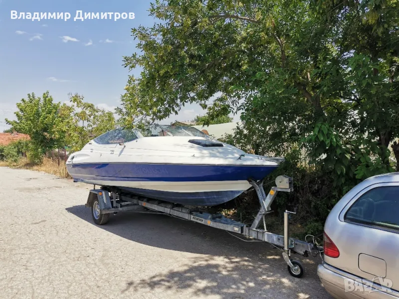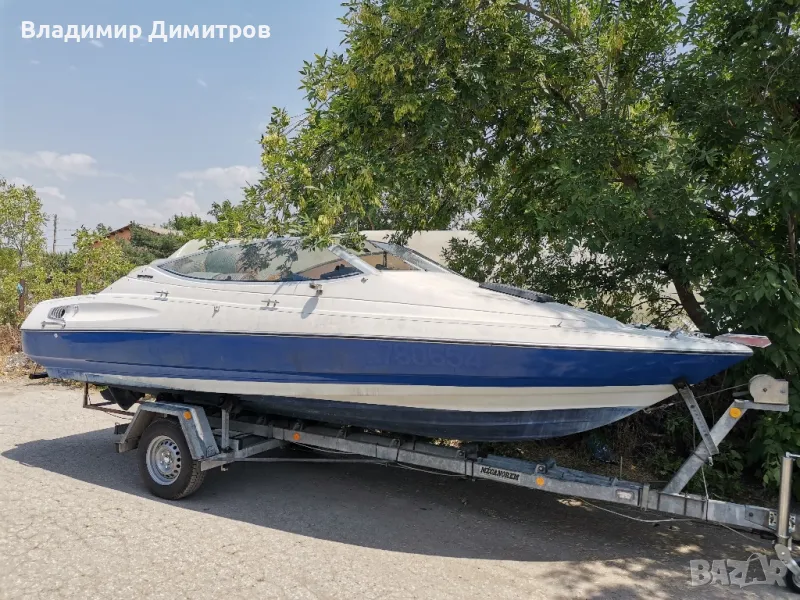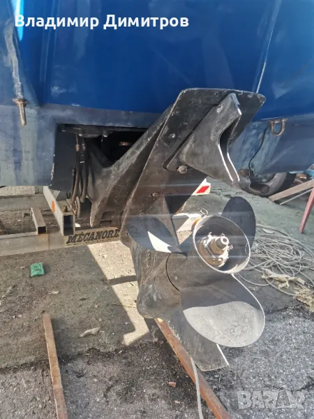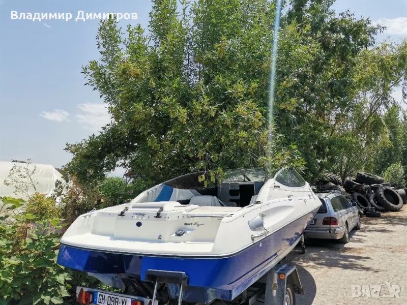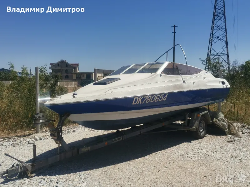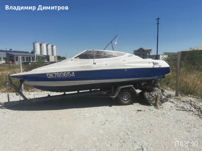 Лодката е внос от Франция със бордови мотор двутактов120 коня със регистриран колесар