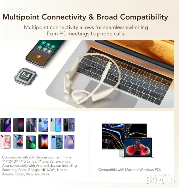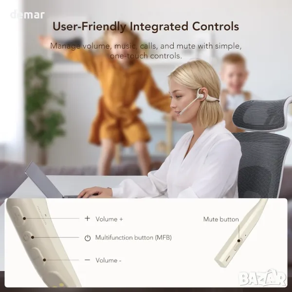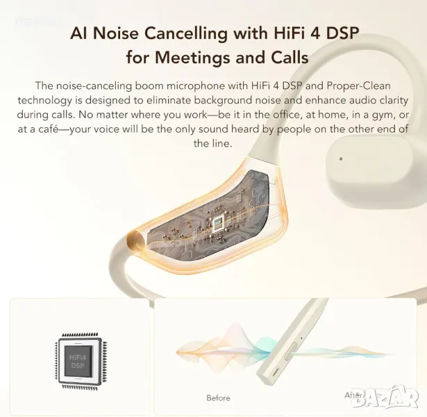 Тези безжични слушалки разполагат с усъвършенствана технология за шумопотискане, която елиминира 99,9% от околния шум, осигурявайки ясно предаване на глас по време на разговори. Микрофонът с регулируема стойка осигурява гъвкавост за разговори или музикално удоволствие. Изработени от мек силикон, те предлагат изключителен комфорт и сигурно прилягане, дори при интензивни дейности. Оборудвани с Bluetooth 5.3, те поддържат многоточкови връзки за безпроблемно превключване между устройства. Удобните за потребителя контроли позволяват лесно управление на разговори и музика директно от слушалките. С до 15 часа живот на батерията и бързо 2-часово зареждане, тези слушалки са идеални за целодневна употреба.