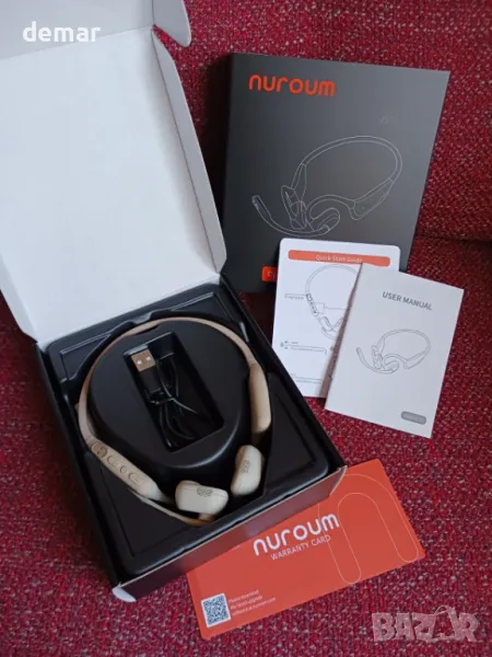 Безжични слушалки с отворено ухо Nuroum OW20B с микрофон, HiFi, бежово