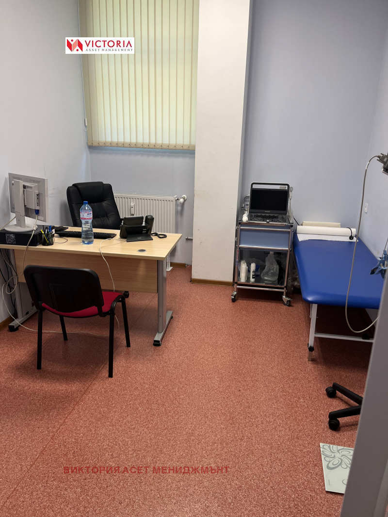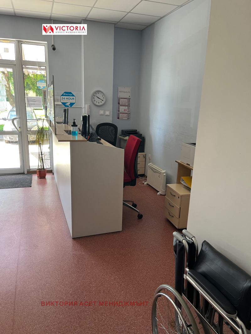 Имаме удоволствието да, Ви представим страхотен бизнес имот със статут на медицински център, намиращ се топ локация вблизост до 10-то училилище и булевард ,, Юрий Гагарин . Отоплението е на тец . Имотът се състои от шест кабинета, два склада, две санитарни помещения, манипулационна и голяма рецепция за прием на пациенти. Общата площ на имота е 177 кв.м с възможност за разширение с 45 кв.м. Някои от кабинетите са оборудвани и готови за прием на пациенти, разполага също и с рампа за инвалиди.