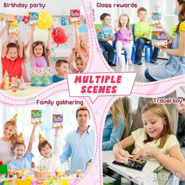 LIKYMO Пълнители за парти чанти за деца, 36 пакета Rainbow Scratch Notes