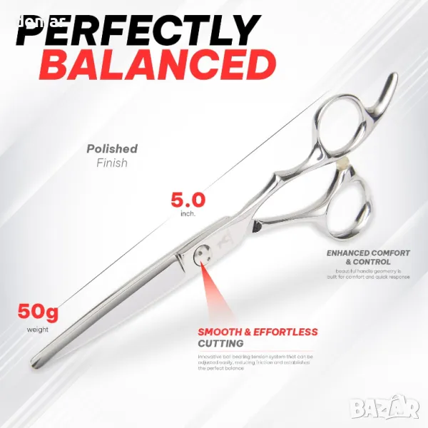 Японска стоманена ножица Shogun Ergo Premium 440C - Професионална фризьорска ножица, 5 инча