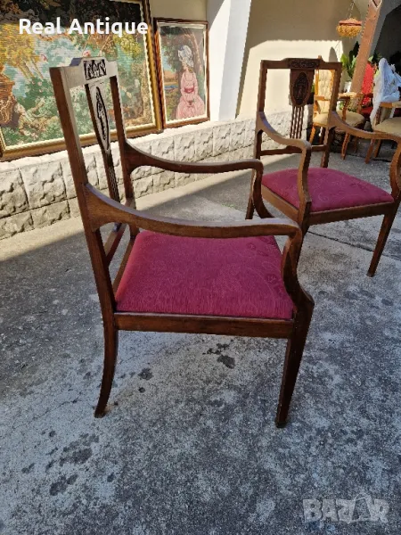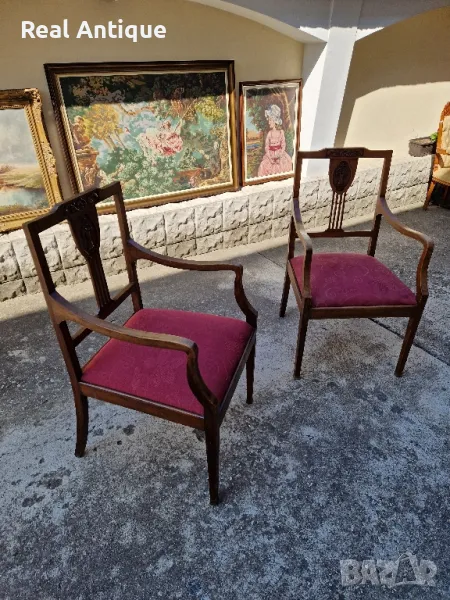 Продавам прекрасен чифт антикварни немски столове кресла Biedermeier от масив орех в много добро състояние. Тежки здрави масивни. Височина 100 см ширина 58 см дължина 58 см.Чудесно допълнение към интериора на Вашия дом офис вила ресторант хотел. Работя с всички куриери. Отговарям бързо.