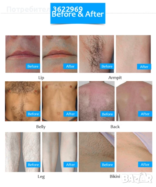 Бърза и ефективна епилация: Голямото лазерно петно и високата мощност позволяват бързо обработване на големи участъци.