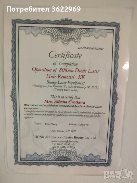 Продавам лазер за епилация Honkon 808KK-1200 – професионален диоден лазер идеален за студио или клиника.Машината работи перфектно е готова веднага да започне да работи и изкарва пари.