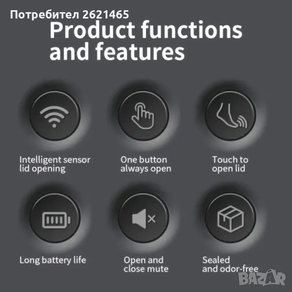 Автоматичен кош за боклук със сензор за движение - умното кошче ще се отвори всеки път когато посегнете към него и ще се затвори без да го докосвате.